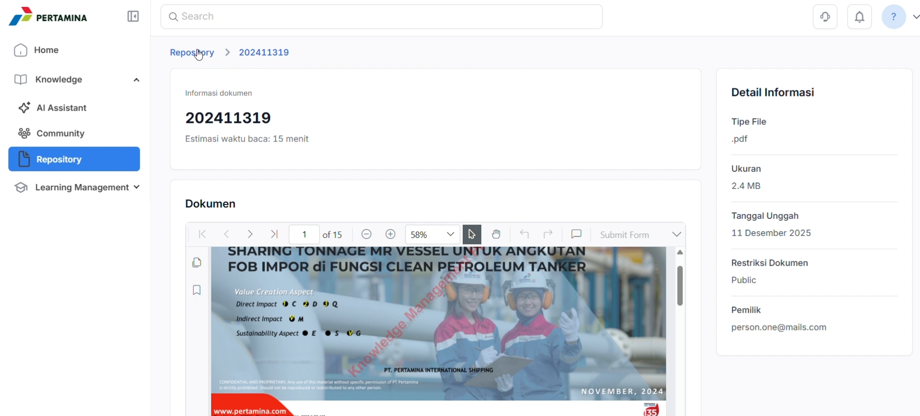 This initiative strengthens Pertamina’s digital knowledge ecosystem, enabling intelligent, data-driven learning and transforming corporate knowledge into a strategic advantage for continuous business growth.